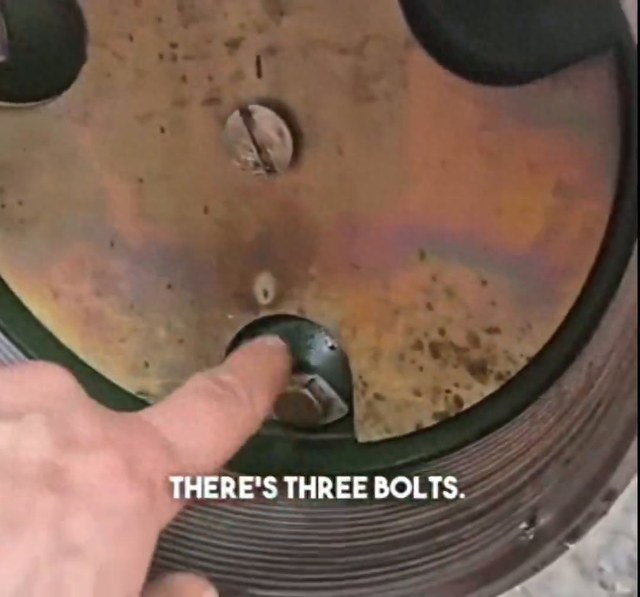 ·下面他就准备拆下固定螺丝进行分离,这时已经分开了,这里有三个固定内衬的螺丝,显然没办法从这边取子战斗部。
