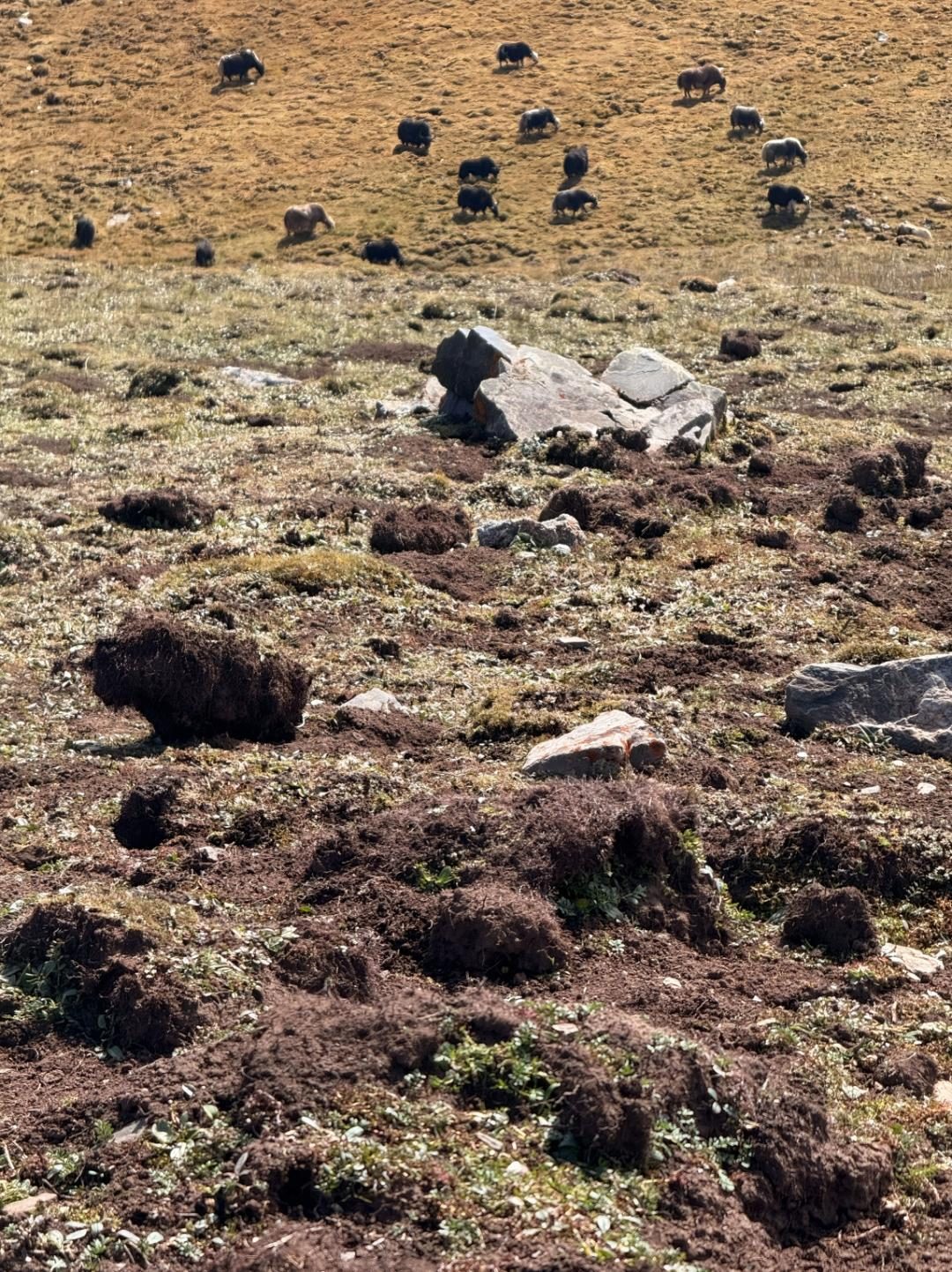 周鹏在和牧民的访谈中也多次听到这一情况。他认为,如果熊长期依赖人类食物和垃圾,对啮齿类种群的生态调节作用可能减弱,从而导致啮齿类动物数量增加,进而对草场结构和植被覆盖造成负面影响。在青藏高原以群落结构相对单一、物种丰度较低的生态系统中,这种干扰可能削弱生态系统的稳定性与功能完整性。