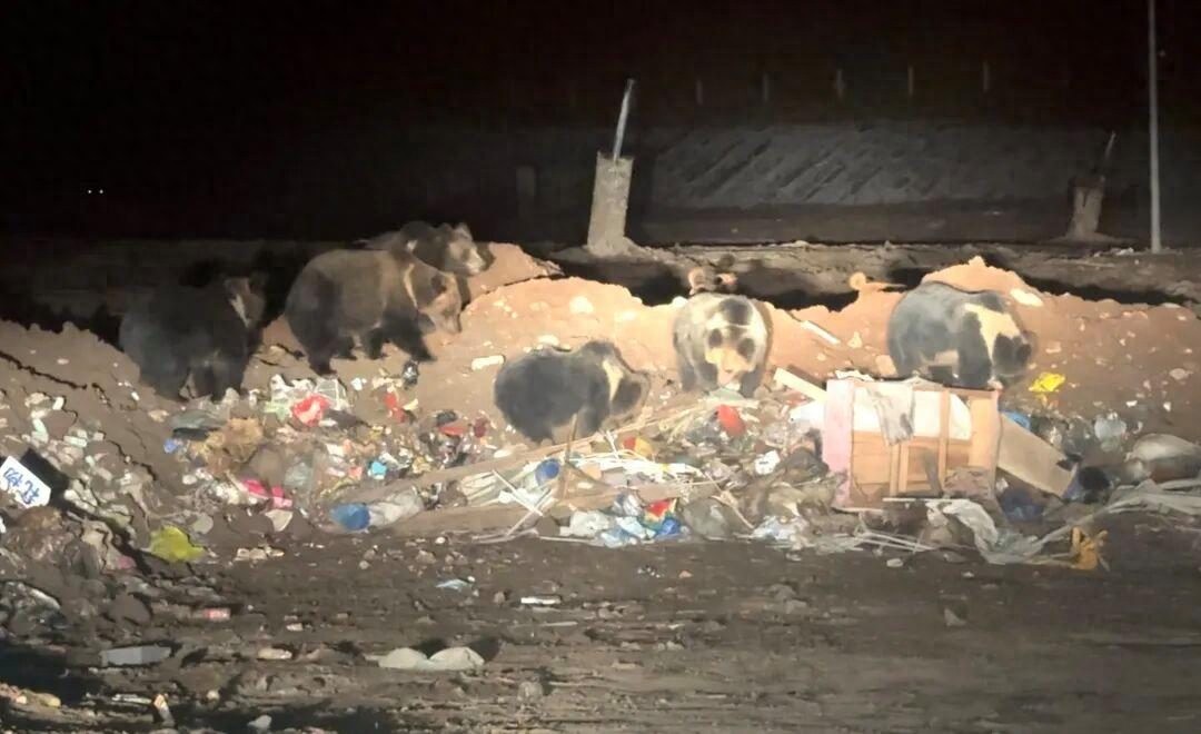 熊出没的时间也变得难以预料。草山的熊习惯在白天刨洞捕食,但垃圾场的熊则习惯晚上觅食。垃圾填埋场附近的不少居民表示,曾在年底零下20多度的夜里,见到过成群的棕熊来垃圾场觅食。