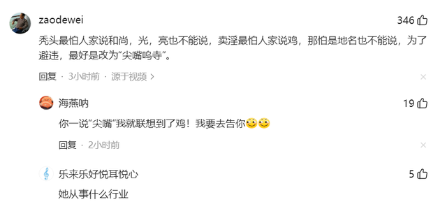 秃头最怕人家说和尚,光,亮也不能说,卖淫最怕人家说鸡,那怕是地名也不能说,为了避违,最好是改为“尖嘴呜寺”。