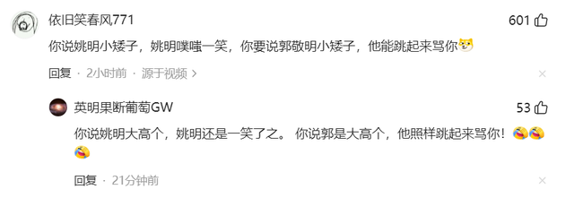 你说姚明小矮子,姚明噗嗤一笑,你要说郭敬明小矮子,他能跳起来骂你
