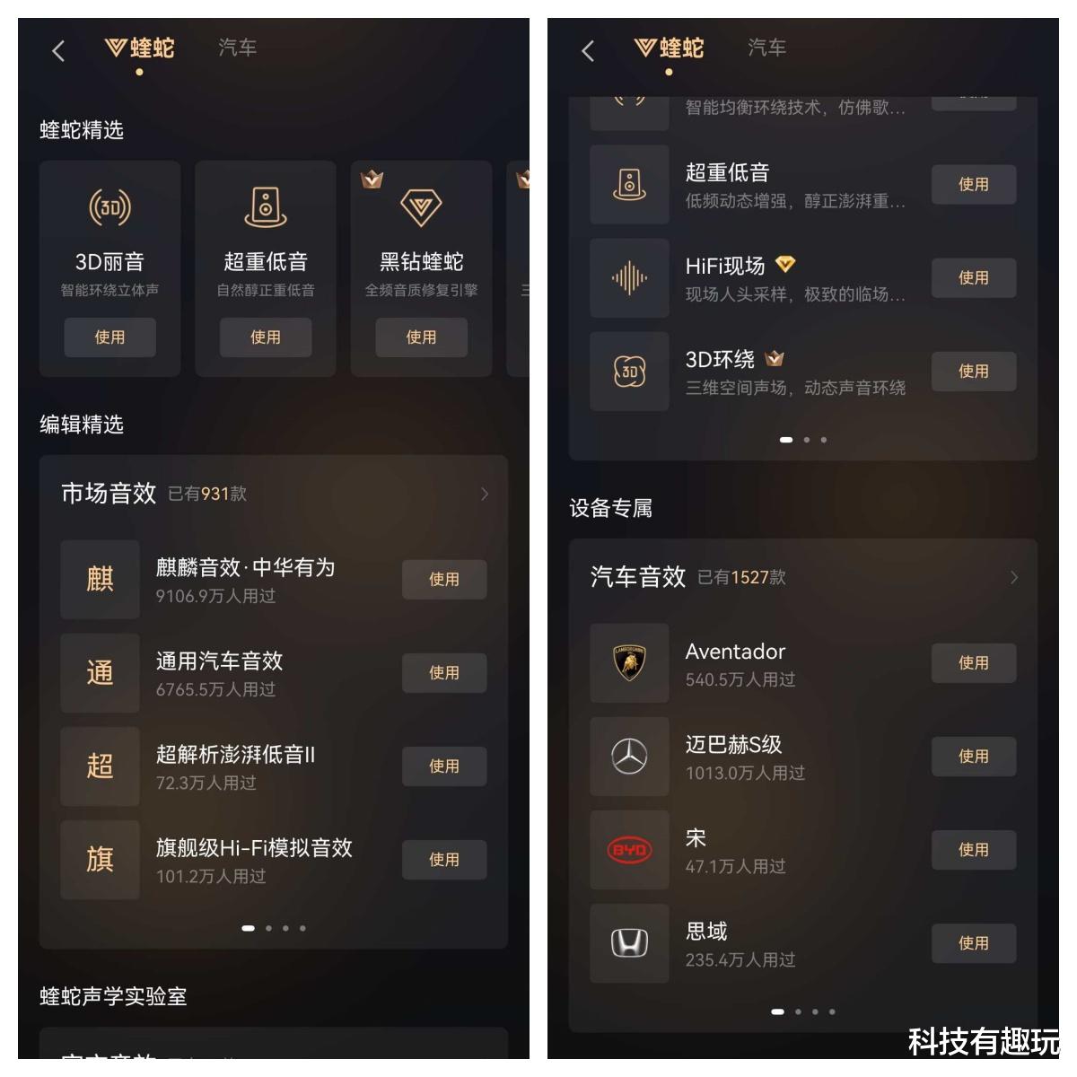 听感方面更是直接拉满。在原有的蝰蛇音效基础上,还新增了音效市场和汽车音效,2400多款音效随便挑。特别要提一嘴的是,鸿蒙版酷狗音乐还专门为鸿蒙设备推出了“麒麟音效·中华有为”,听感无限接近无损,真心推荐大家亲自试试!