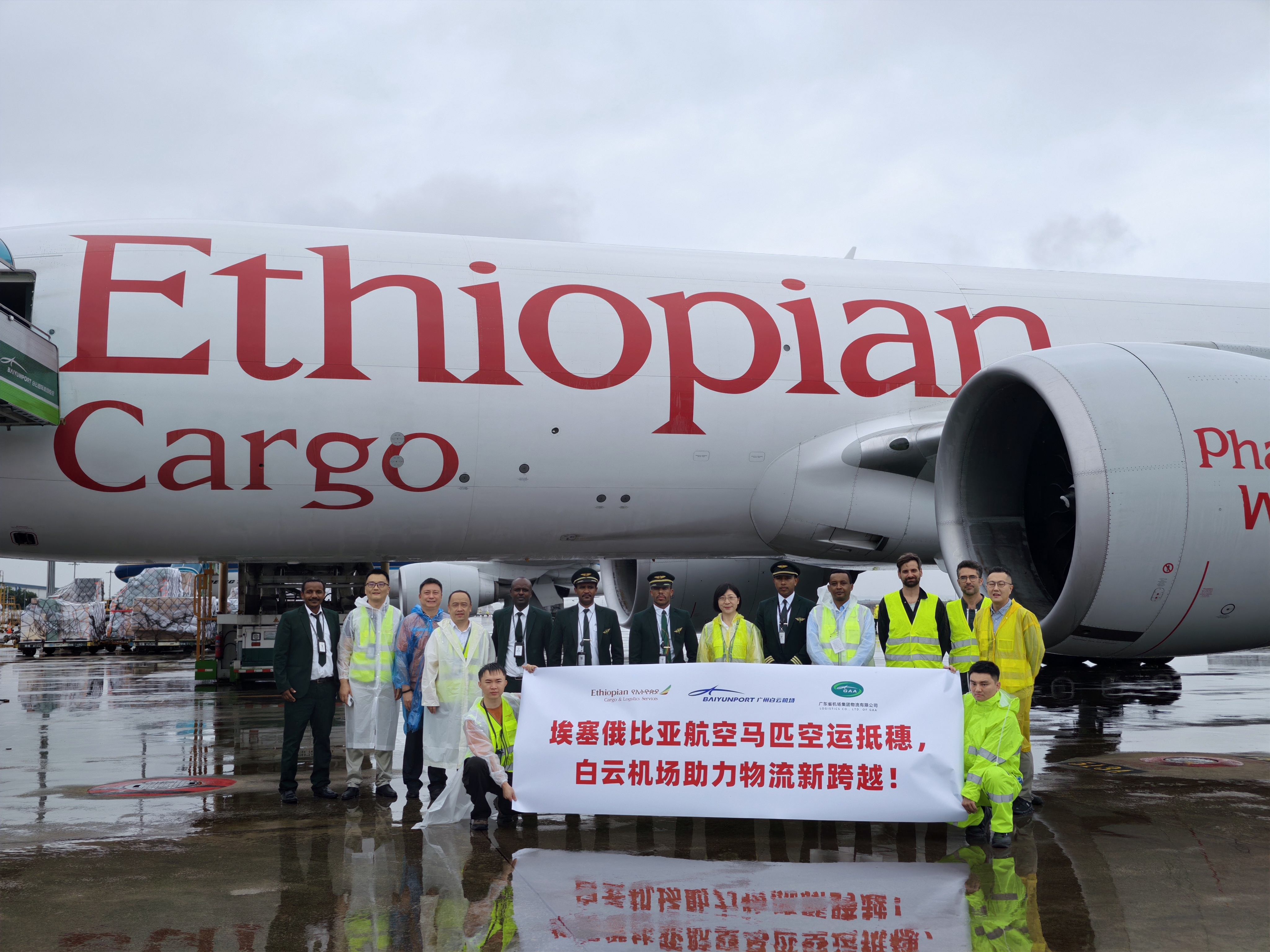 9月 20 日上午,由埃塞俄比亚航空执飞、唯世智运货运代理公司统筹协调的货运航班平稳降落在广州白云机场。