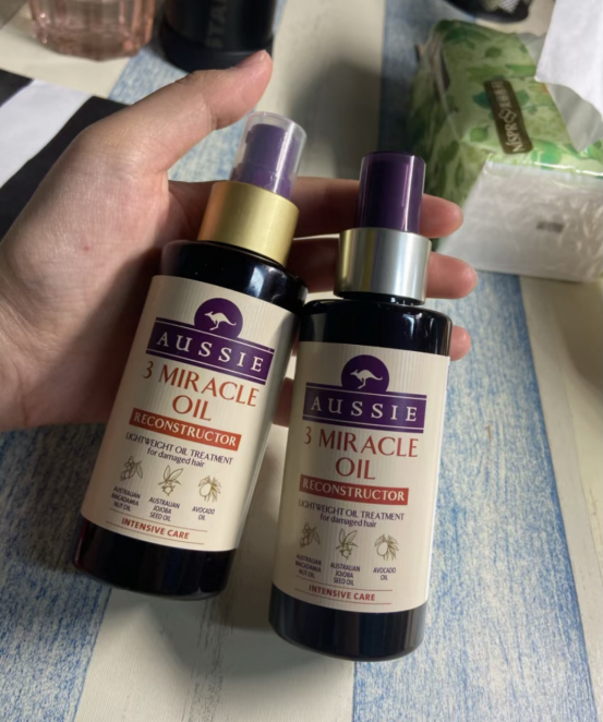 Aussie袋鼠护发精油的效果还算不错,但它的硅油成分也让我在长期使用这里会有点担心,尤其是对头皮的影响,不过柔顺效果倒是还可以,香味虽然好闻,就是时间久了会有点腻。