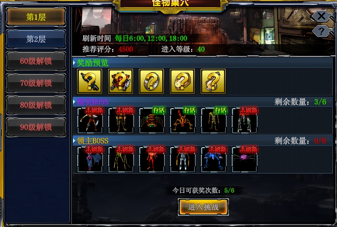 领主:每天6点、12点、18点刷新,击杀后有更高几率爆出金装。