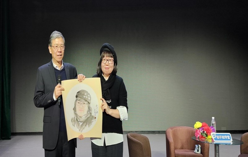 活动尾声,“百川汇海·作家大讲堂”组委会负责人向乔叶赠送了由海淀画家景岚创作的肖像画作,致谢她的倾情分享。