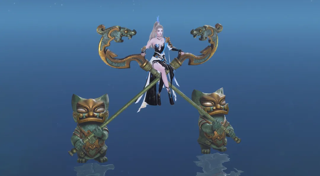 今年的限定坐骑同样不止一款,灵感来源自三星堆遗址出土的青铜神像的坐骑【古蜀侍从】,以方正宽厚的外形,凸显历史的厚重感。和【玄渊金猊】相比,这款青铜坐骑所需的榜单排名更低,获取更亲民。如果觉得对自己而言争夺最顶端的排名有难度,那么降低一点预期,带走这款限定坐骑也很不错哦~