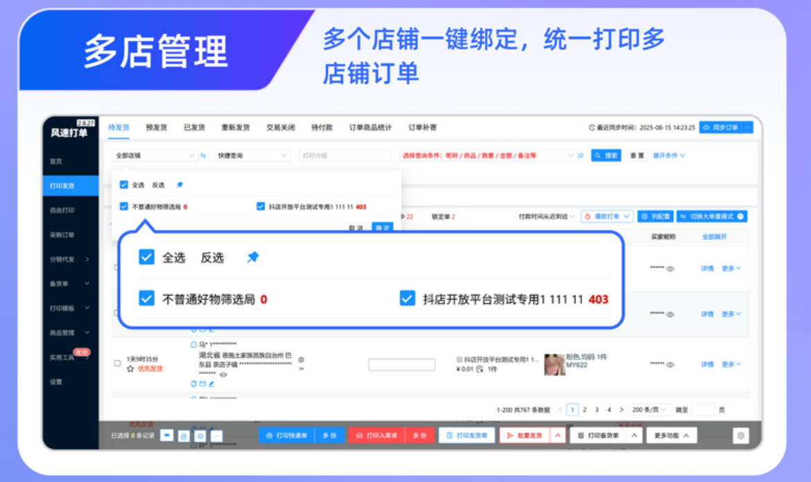 如果日订单量500以上,而且还有其他平台店铺,可以使用风速打单专业版,年付情况下只要21.5元/月,低成本;