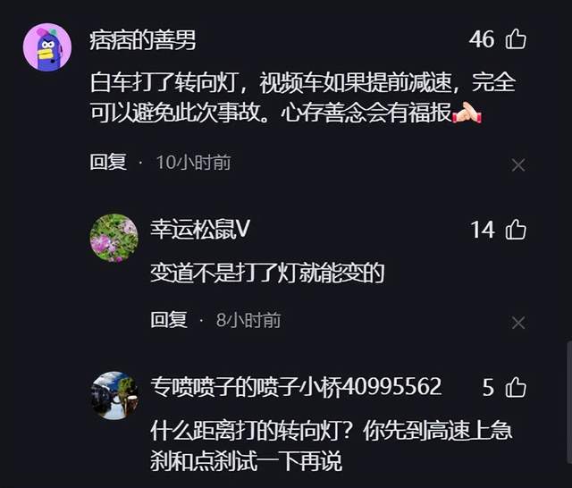 白车打了转向灯,视频车如果提前减速,完全可以避免此次事故。心存善念会有福报