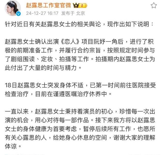 目前工作室回应又爆了热搜,只能说,祝福赵露思早日康复啊~
