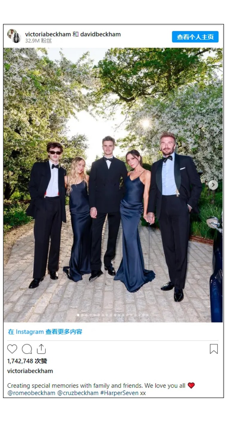 大卫曾在父亲节用一张与四个孩子的合影示好,写道:“我最重要、最自豪的角色就是当你们的父亲。”小儿子们纷纷回应,唯独布鲁克林“已读不回”。