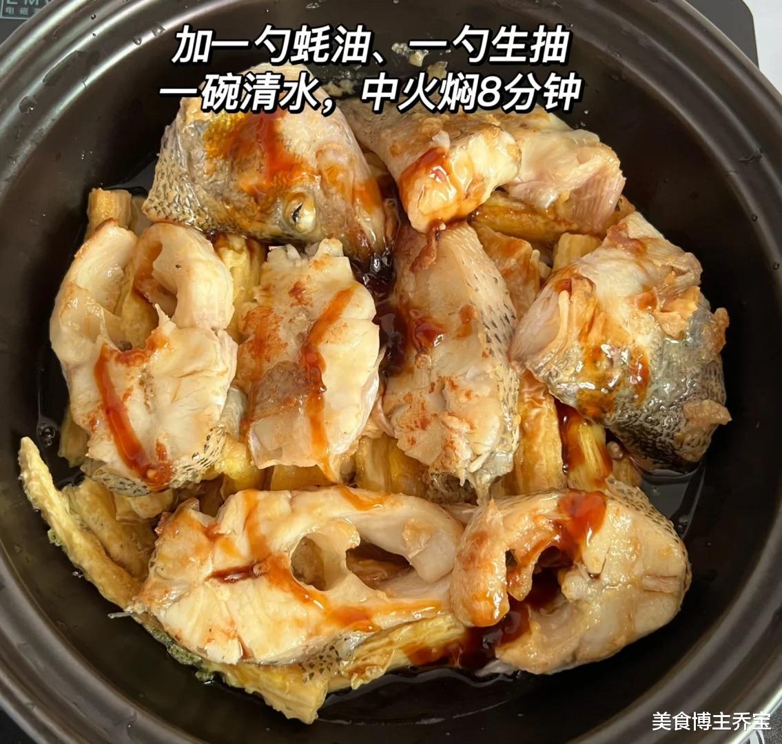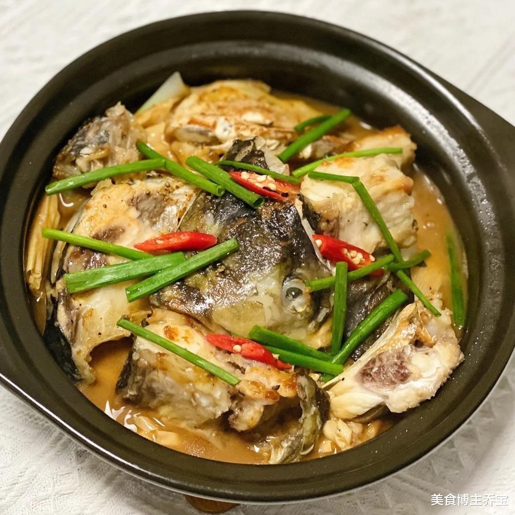 3、15 分钟后,打开锅盖,你会发现鱼头已经煮得很入味了,汤汁也变得浓稠鲜香。这时候,把泡发好的腐竹段放入锅中,再煮 5 分钟,让腐竹充分吸收汤汁的味道。腐竹特别能吸汁,煮过之后,每一口都充满了鱼头汤的鲜美。用淀粉调一点水淀粉,慢慢倒入锅中,边倒边搅拌,让汤汁变得更加浓稠。汤汁浓稠后,撒上葱段,咱们这道美味的腐竹鱼头煲就大功告成啦!