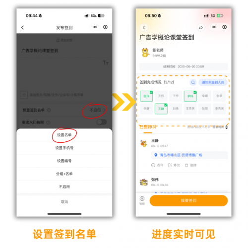 接龙管家小程序的【发起签到】功能,为高校多样化的签到场景量身定制