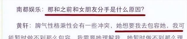 当被问到分手原因的时候,黄轩表示两人性格不合无法包容。