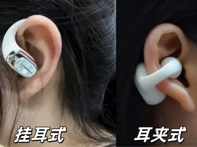开放式耳机主要分为挂耳式和耳夹式两种类型:挂耳式通过柔性耳挂绕在耳廓上,佩戴稳固,适合运动,音质表现通常更好。