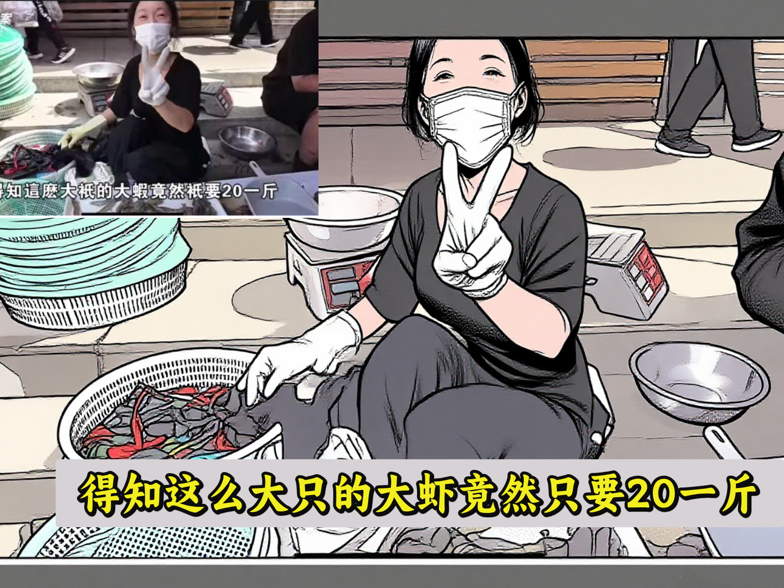 路过一个卖大虾的摊位,得知这么大只的大虾竟然只要20元一斤,夫妻俩忍不住停下了脚步。