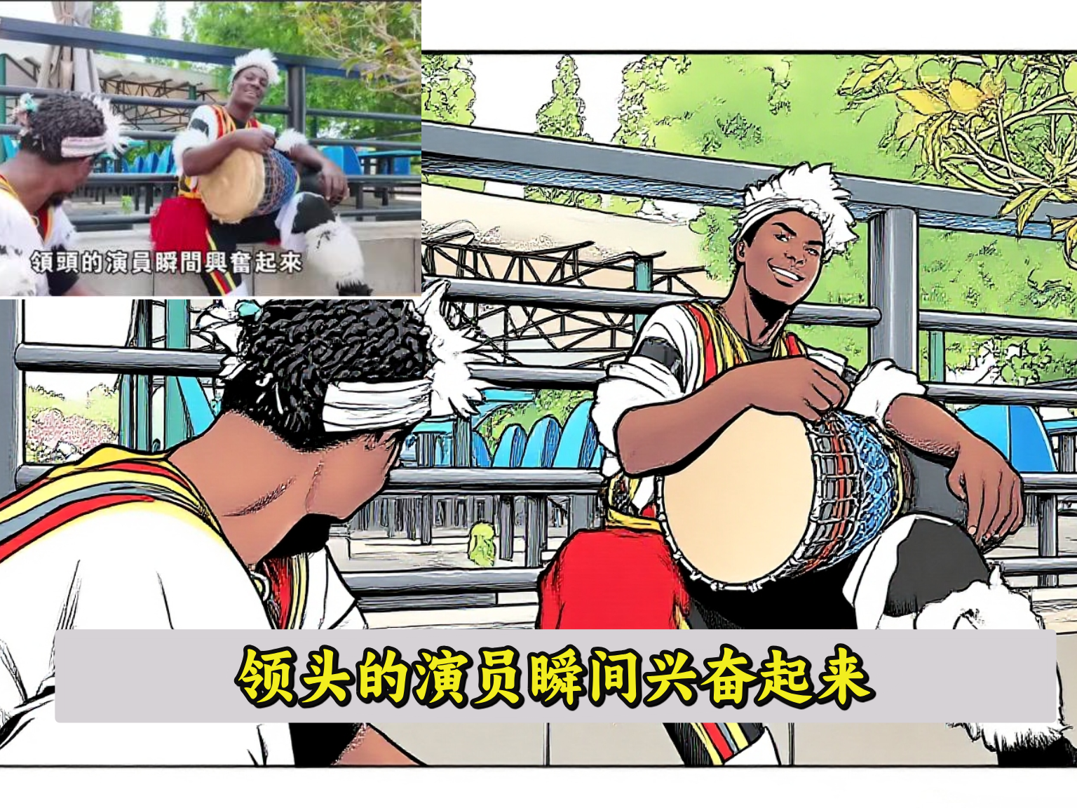 在外面的休息区,夫妻俩遇到一群来自乌干达的演员,得知夫妇俩来自韩国领头的演员瞬间兴奋起来,跟夫妇俩热情的聊起了他们熟知的韩国品牌,还跟着他们学了几句韩语。