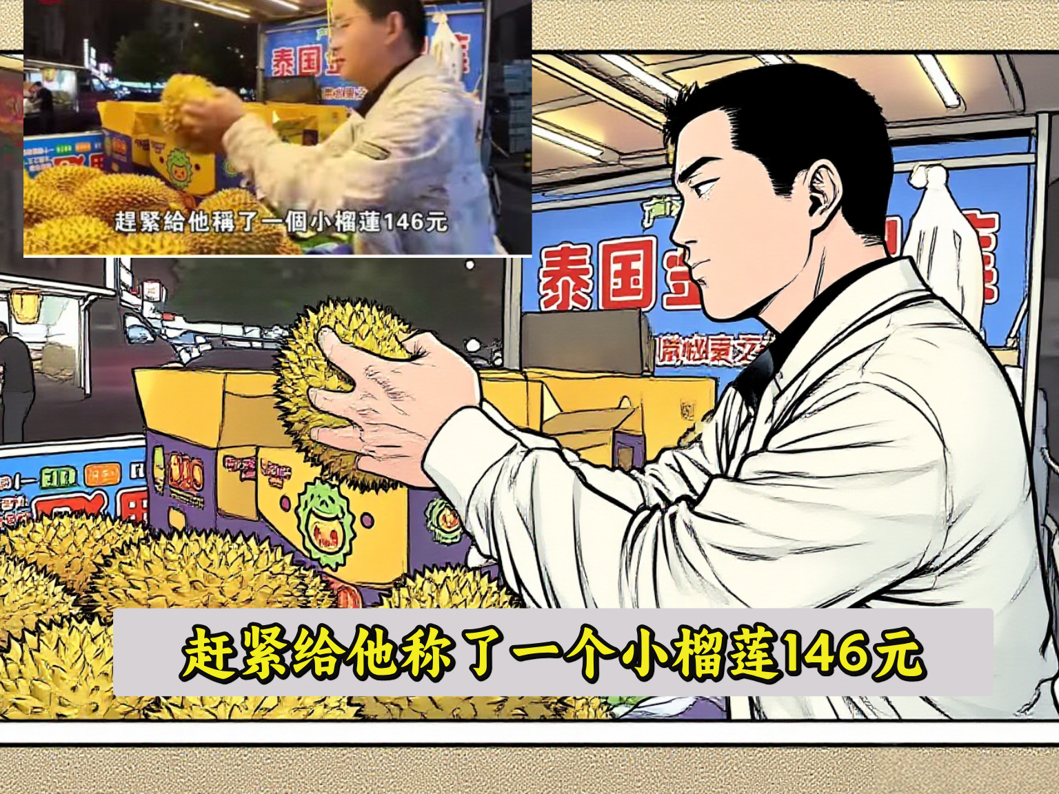 吃完饭后,回酒店的路上,大叔碰到了自己最喜欢吃的水果,在街边叫卖的榴莲,摊主赶紧给他称了一个小榴莲,146元折合大约三万韩元,却当场被大叔拒绝了,因为他觉得价格太高,而且夫妻俩根本就吃不完一整个榴莲。