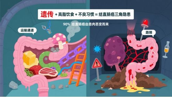 肠道作为人体的 “营养运输通道”,每日有条不紊地进行食物消化、营养吸收与废物排泄工作,维持着身体的正常运转。然而,结直肠癌却如同悄然设置在这条 “通道” 上的 “隐形路障”,从肠道黏膜的微小病变逐步发展为恶性肿瘤,阻碍健康的顺利通行。