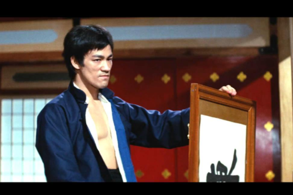 《猛龙过江》里最著名的镜头当属当地大剧场里李小龙与罗礼士的那场戏,被《黑带》评为有史以来最好的电影之一。双方尚未正式动手,开场前的热场便已经将场面渲染得极为激烈,李小龙瘦弱的背影,角落里一只小奶猫在一旁围观,罗礼士与李小龙眼神交流,尽显六七十年代经典的格斗风格,李小龙的怒吼更像是一把把锋利的刀子,刺入对手体内。这场战斗,无论是从理念上,还是从表演上,都可以说是一部经典的武侠片。李小龙凭借一部《猛龙过江》一夜成名。