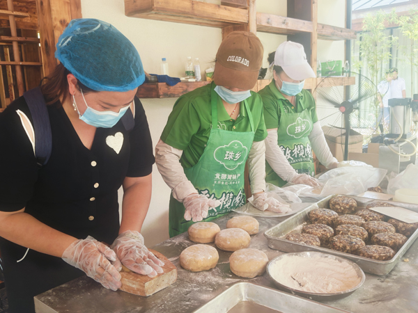 一场独具特色的非遗讲饼堂演讲,使绿色、健康且食用后不易上火的珠乡橄榄月饼更加深入人心。活动现场气氛热烈,空气中弥漫着独特的非遗气息。其中,最引人瞩目的是荔枝柴火月饼古窑坊的沉浸式体验。传承人在现场演示了从揉面、包馅到柴火烘烤的完整制作工序,让来宾能够近距离直观感受“饼皮松酥绵柔、内馅鲜香回甘”的非遗魅力。这种将传统技艺与现代科普相结合的创新模式,正是珠乡大健康产业园“活态传承”的生动体现。