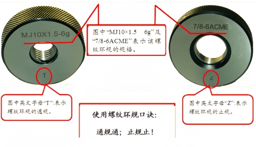 螺纹塞规/环规:用于检测内螺纹(塞规)或外螺纹(环规)。通端检验螺纹的作用中径和底径(或顶径)的最小实体尺寸,保证可旋合性;止端检验螺纹的单一中径,防止过紧。