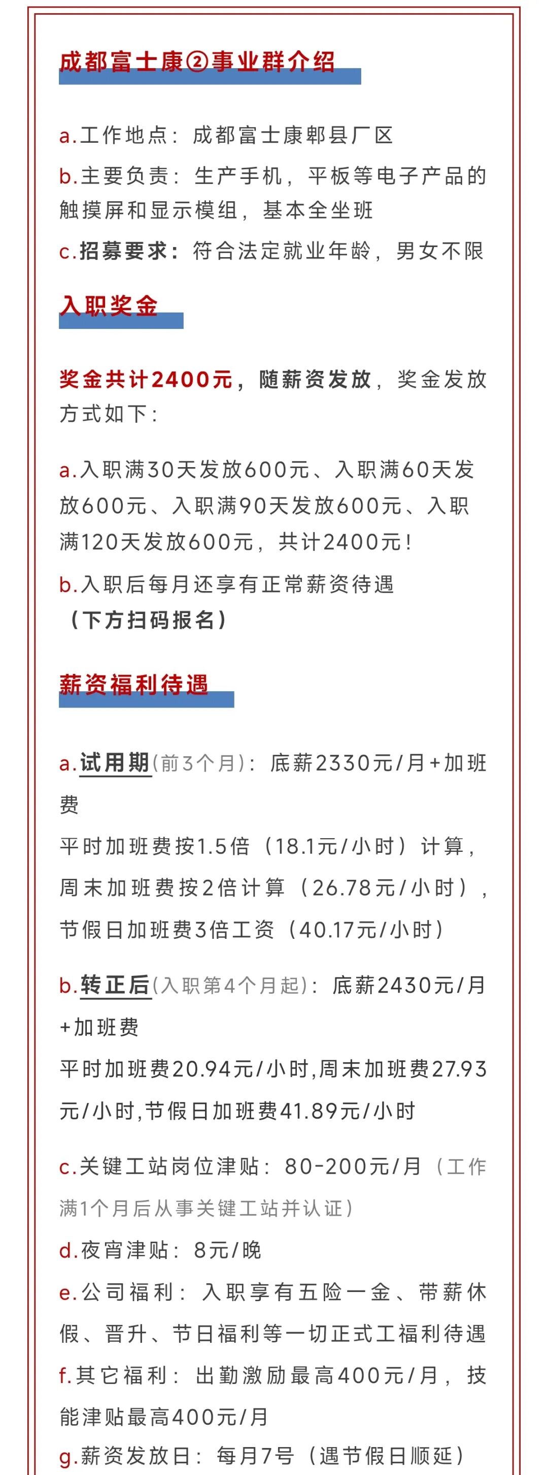 (成都①事业群7月30日招聘的返费工模式)