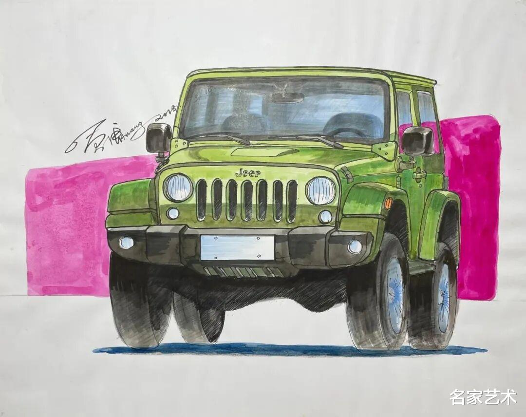 黄启庚 《吉普-2》 马克笔手绘