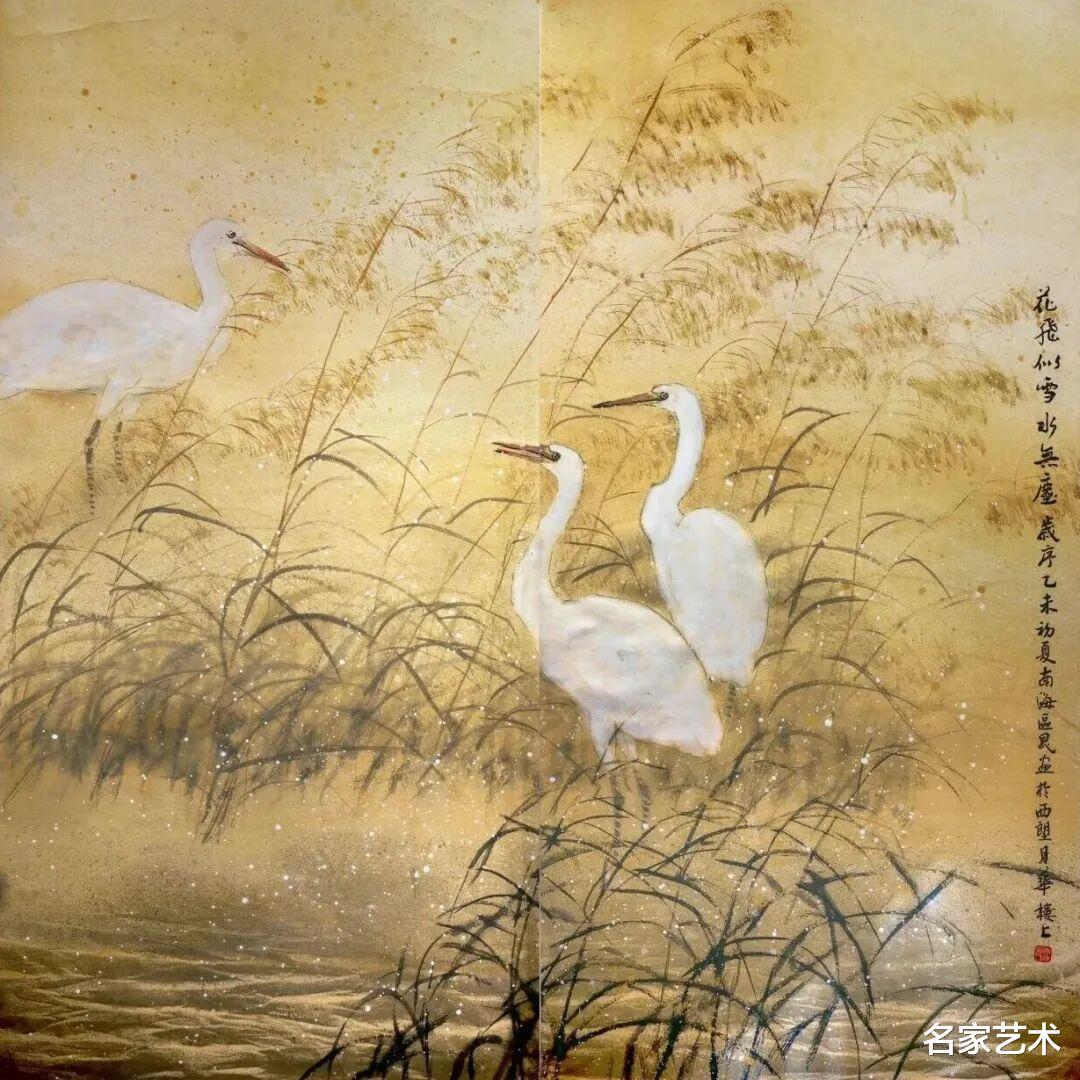 区 昆 《金秋白鹭》 中国画