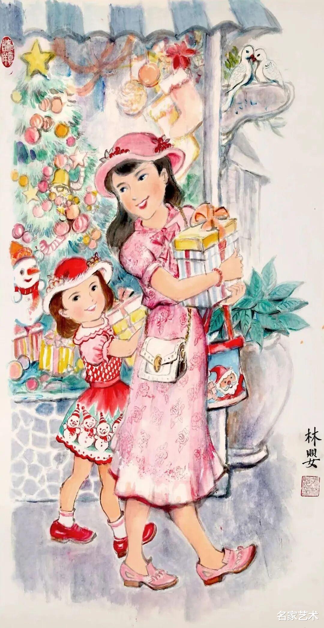 张林婴 《母女同行》 中国画