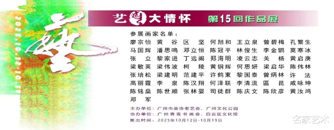 "艺 . 大情怀" 第15回作品展于2025年10月12日上午十时在广州文化公园西关苑隆重开幕!欢迎大家光临参观!