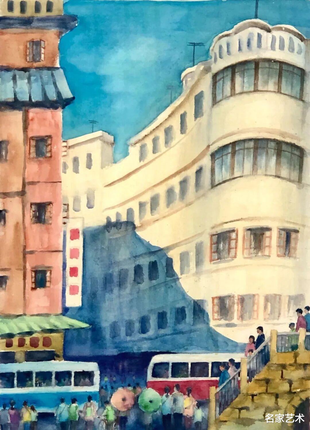 李金鹦 《车水马龙》 水彩画