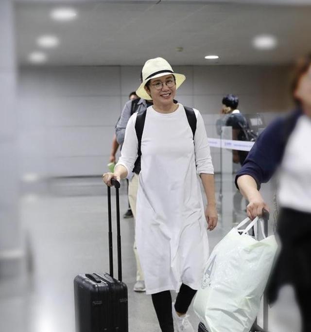 参加儿子的校园活动时,她穿着宽大的白色休闲裙,一点也没有当初的精致时髦。