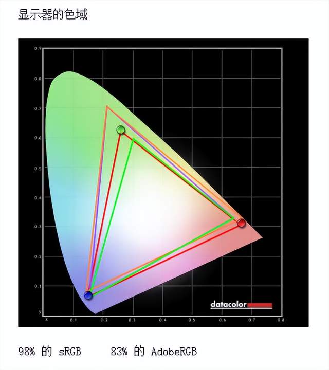 我用校色仪测得 98 % sRGB、83% AdobeRGB。