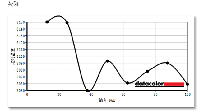 在40-100亮度之间灰度稳定在8070,同时色调响应也足够优秀,与光度2.2高度重合。