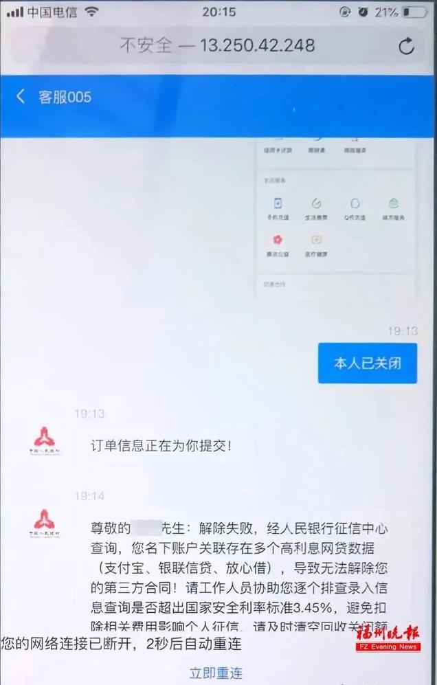 一开始,黄先生半信半疑,但对方调出了“公安部人口信息数据库”信息(后证明系伪照)。于是,黄先生便打消了怀疑的念头。“客服”称要通过新的低息贷款去抵押老的高利息贷款。黄先生便按照“客服”指导准备通过支付宝借呗、微信微粒贷等多个网贷平台申请贷款,然后转账给指定银行账户。