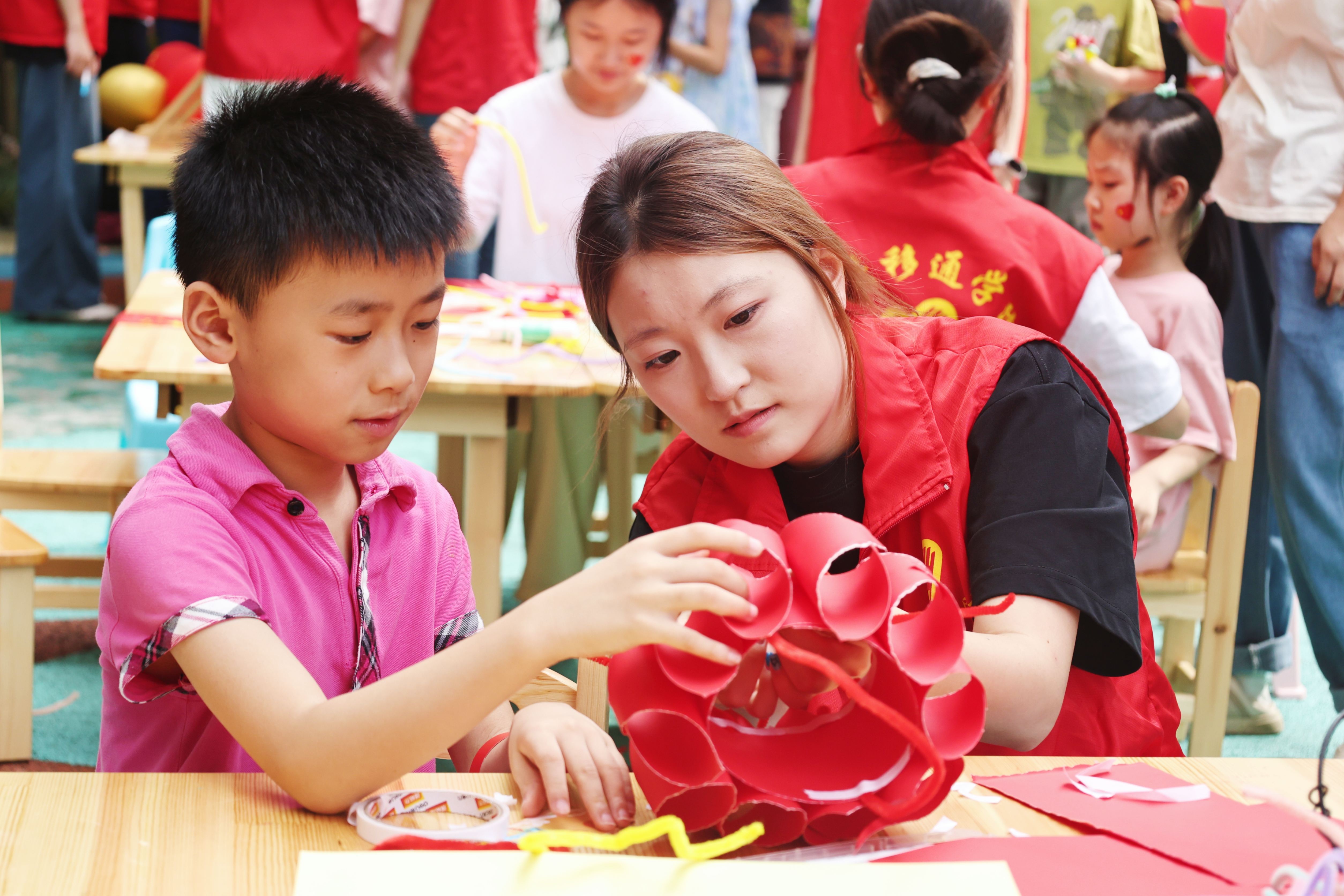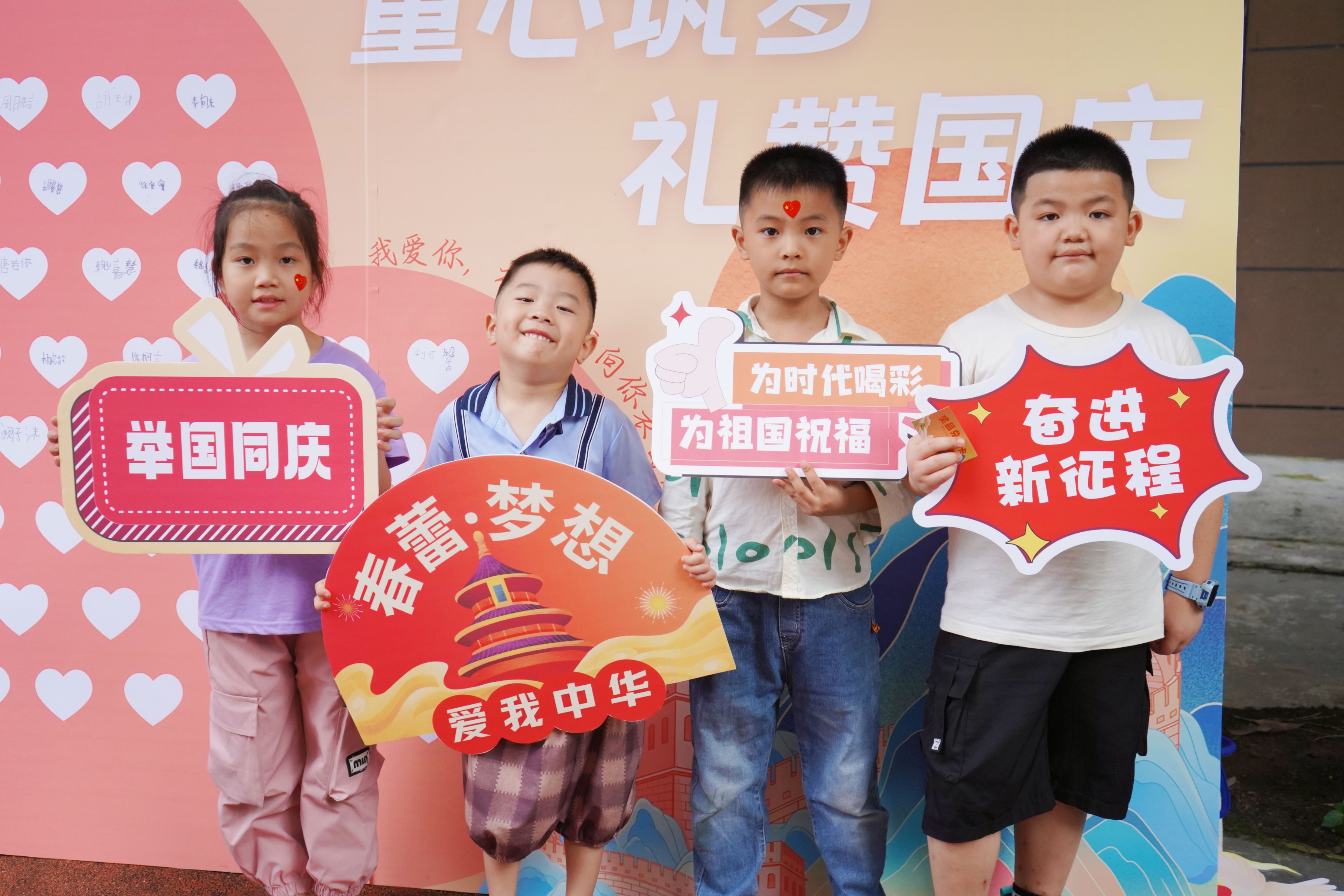 稚语润心,涂鸦寄情。在合川区洛阳溪社区儿童活动中心,志愿者的镜头捕捉到了最纯粹的爱国情怀。画面中央,小朋友们手捧绘有五星红旗下天安门的画作,稚嫩的童音里饱含着对祖国的无限热爱:“我画了会发光的国旗,要和祖国一起长大!”当被问及想说的话时,孩子们挥舞着小国旗雀跃欢呼:“祝祖国妈妈76岁生日快乐!”志愿者用镜头精准定格童真瞬间,将这份纯粹的爱国情怀凝成献给祖国华诞的“童心贺礼”,也让爱国主义的种子在孩子们心中悄然生根发芽。