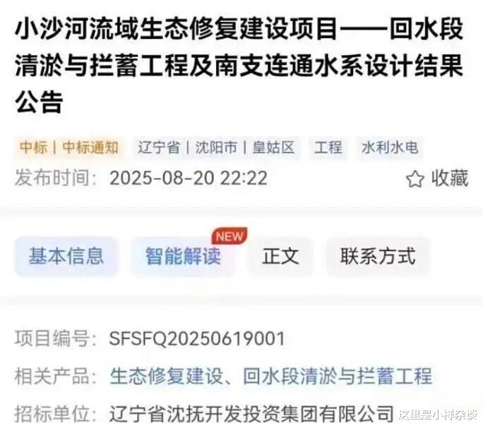 小沙河流域生态修复工程是沈抚示范区重点生态建设项目,自2020年实施。