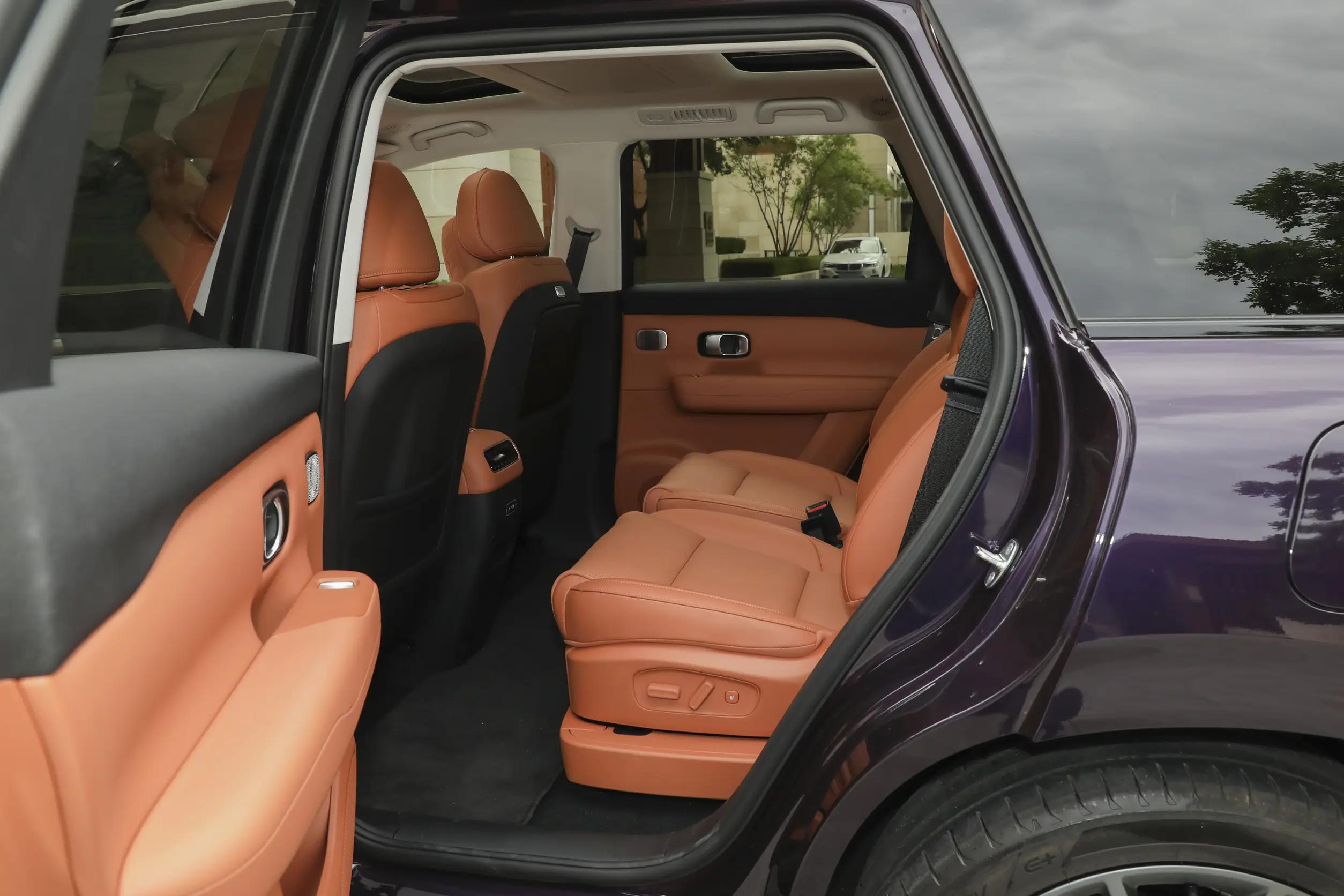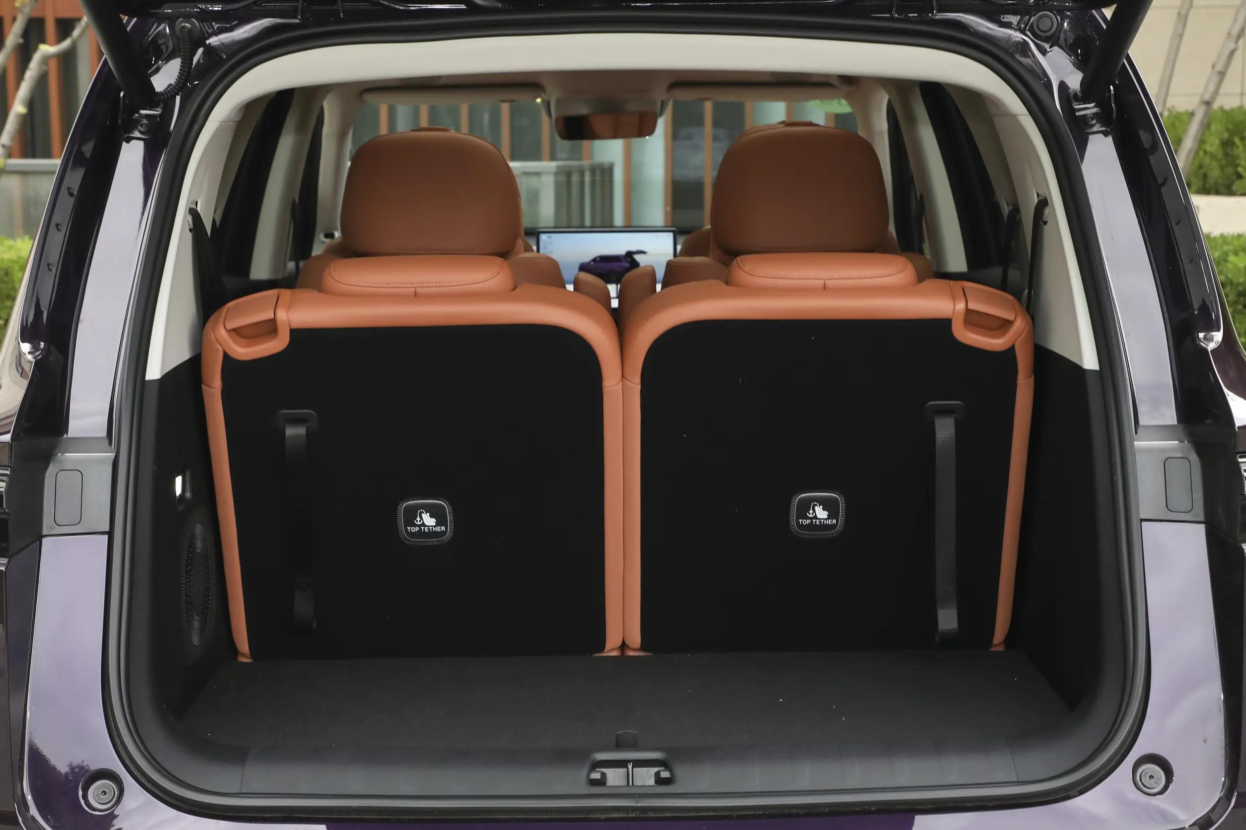 后备箱空间也很灵活,6 座模式下常规容积能放下两个 24 寸行李箱加几个背包,要是把第三排座椅放倒,装婴儿车、露营装备这些大件物品都不在话下。5 座版本的后备箱更能装,日常用的话放孩子的自行车、折叠轮椅都轻松,周末全家出游带再多东西也不愁装不下。车内到处都有小储物格,车门板能放下大水杯,中控台下面的镂空空间可以放包包,各种小物件都能找到地方放,照顾到了家庭用车的各种细节。