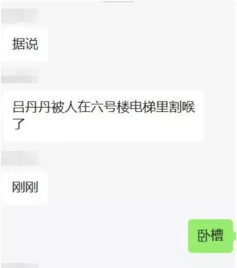 有消息称,阿某拿着吕某的手机在医院群里群发她出轨的消息,27日当天,阿某在医院电梯里给了吕某三刀,一刀割在她的颈部大动脉上,一刀心脏,一刀在腹部,割完后阿某就跳楼了,最后两人都没有抢救过来。