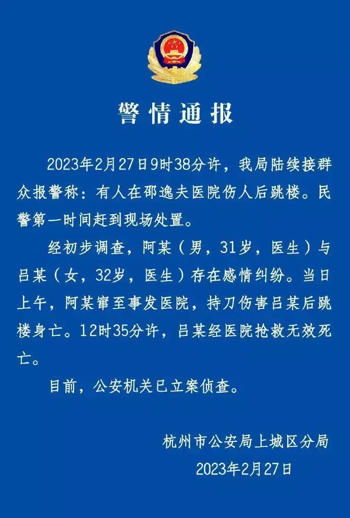 河南滑县杀妻案还没过去,浙江杭州邵逸夫医院又出现凶杀案,死者和男方是情人关系,根据警方的通报,两人存在感情纠纷。