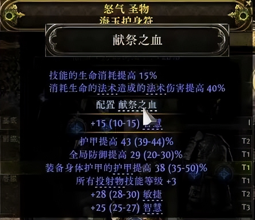 项链:+3投射物技能是必须的、护甲值%、全域防御%、深渊词缀装备身体护甲提高%、完美这样的项链非常贵,我这是收底子自己做的、你们找+3技能和护甲提高%40+的就行了便宜,一步到位的话就做我这样的。