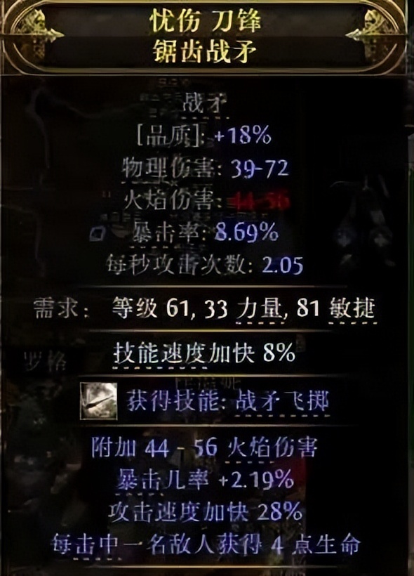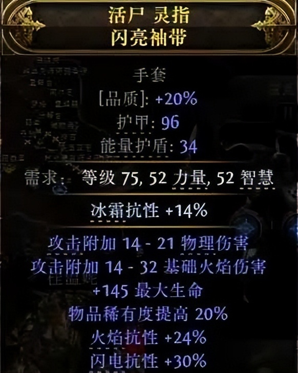 戒指:优先不低于T3的火焰点伤和物理伤、最大生命、属性、稀有度、我这个不合格,剩下的缺什么自己补什么,我追求了稀有度。