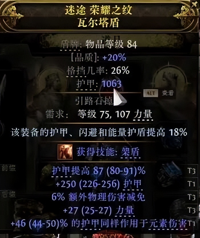 主手I装备:随便带一个+攻速25以上长峰武器和一个高护甲格挡盾牌就可以了。武器要攻速主要是要快速放盾墙使用的。