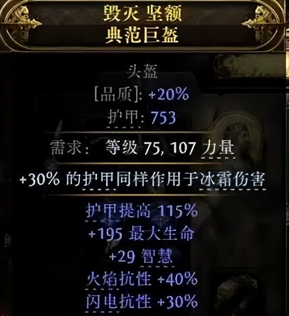 头盔:护甲不低于600+、最大生命、稀有度、护甲抵抗元素伤、缺什么抗补什么就行,有属性或者稀有度的更优。