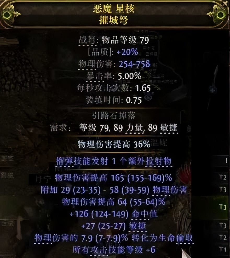 副手II装备:武器:必须找物理大伤750+的十字弓、+6+7技能等级,最好只要物理dps达标的,后缀有属性或者深渊词缀再次启动的更好,技能+6用完美战斗精髓点必出+6,自己制作即可。
