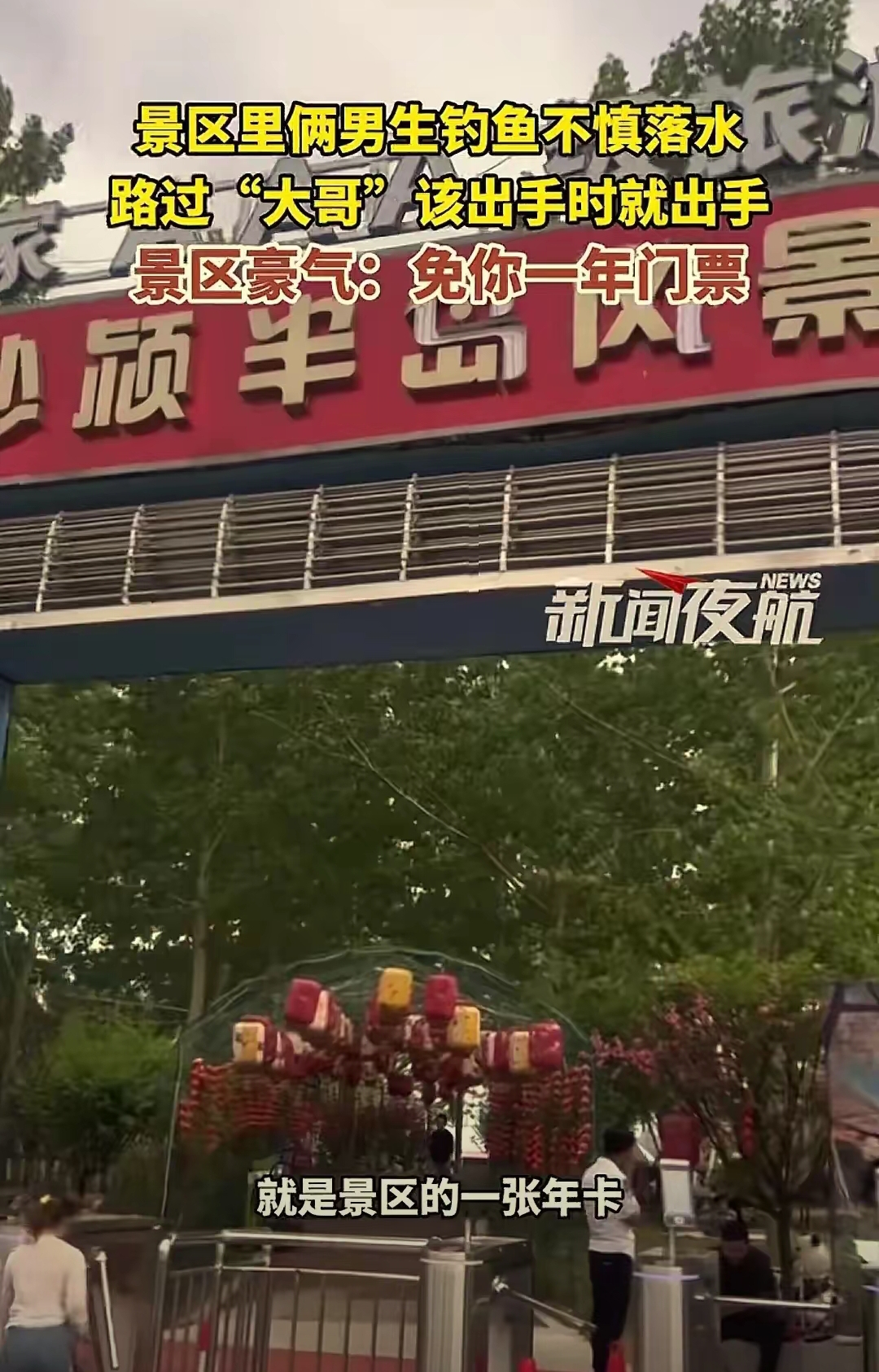 景区工作人员杜先生目睹了整个救援过程,他对黑衣男子的见义勇为行为深感敬佩。在黑衣男子去车里换衣服时,杜先生找到了他,代表景区向他表示感谢,并赠送了一张年卡门票,让他可以免费游玩景区一年。