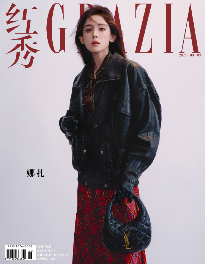古力娜扎最新《红秀 GRAZIA》封面一曝光,直接让人眼前一亮!封面里她穿了件利落的黑色皮夹克,下身配红格纹短裙,最吸睛的是脚上搭了双黑丝,又纯又欲的感觉一下就出来了。她手上戴着黑色手套,拎着 YSL 小手袋,眼神又酷又撩,时尚感直接拉满。