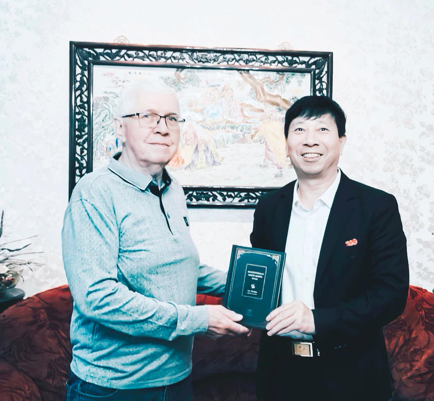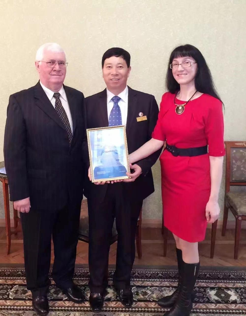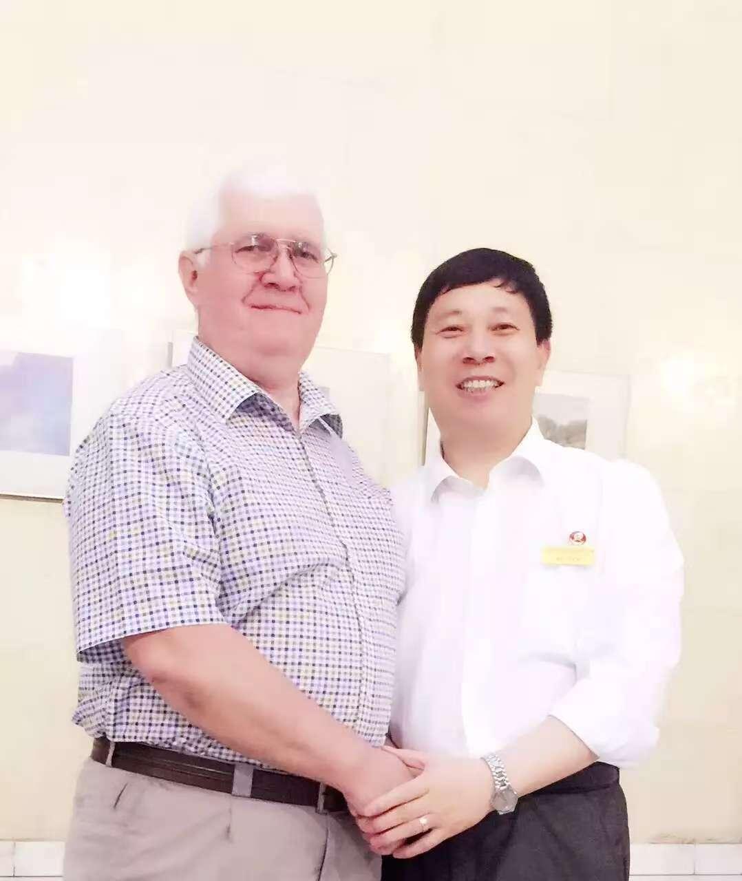 会谈期间,刘瀚锴先生向白俄罗斯国家前最高委员会主席库滋涅佐夫阁下,馈赠了我国著名教育家朱永新教授的俄文著作,库滋涅佐夫阁下认真翻阅了几页,伸出大拇指,连说0K,并说他一定会抽出时间认真阅读!会见在热情友好的气氛中,在双方的祝福声中圆满落幕!