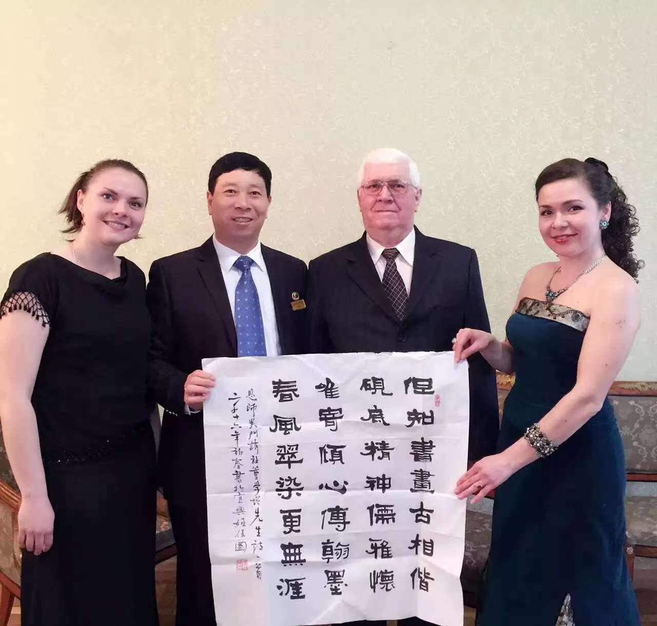 作为中白文化交流的“老朋友”,库兹涅佐夫阁下对刘瀚锴先生一行的到访表示热烈欢迎。交谈中,他再次高度赞扬刘瀚锴先生多年来为白中两国文化艺术发展作出的重大贡献,直言“刘瀚锴先生几乎走遍了白俄罗斯的每一个地区,用真心把中国文化艺术的种子洒向白俄罗斯大地”,认为正是这份执着与真诚,让无数白俄罗斯人得以近距离了解底蕴深厚的中国文化。